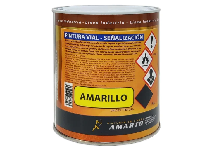 Pintura señalizacion vial pintura acrilica en base disolvente de secado rapido pavimento de ormigon y asfalto (1 kg, Amarillo)
